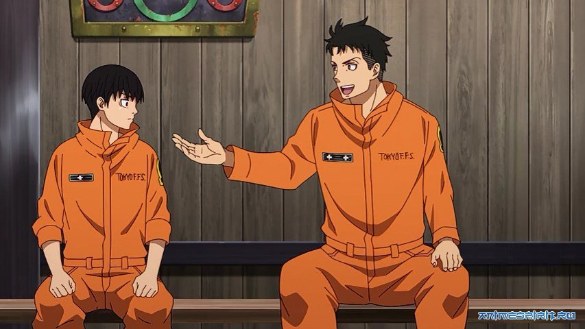 Описание: В Токио участились случаи самовозгорания. Причины этого феномена неизвестны, и люди не умирают, а превращаются в огнелюдей — безмозглых монстров, которые становятся причиной ещё больших пожаров. Для борьбы с ними созданы пожарные отряды, которые ещё и пытаются выяснить, из-за чего это всё происходит. К такому отряду присоединяется Синра Кусакабэ. Его считают виновным в смерти собственной семьи, и, чтобы доказать обратное, парень стремится стать героем, которого будут уважать и не бояться.